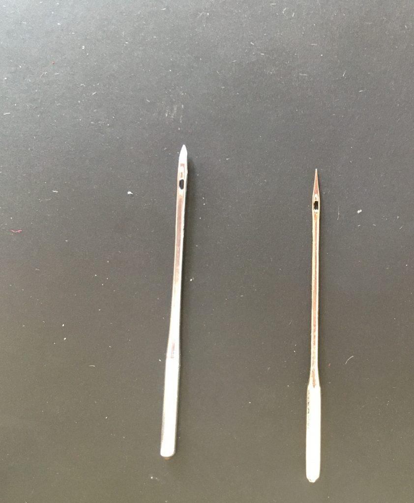 Can you tell the difference? I always use leather needles when sewing leather, typically size 80(11), 90(14) or 100(16). For fabric linings I use standard needles.